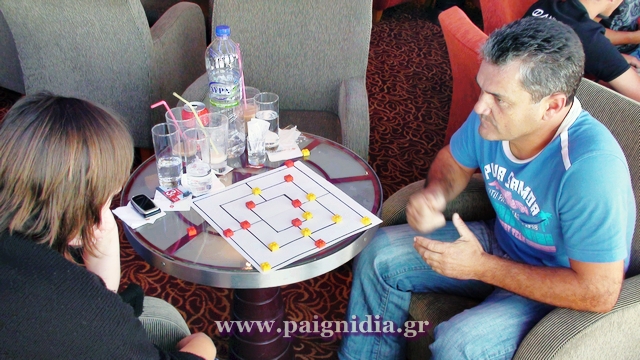 Έβαζαν λοιπόν τα χαλίκια τους στα σημεία τομής των ευθειών εναλλάξ και με τη σειρά που έδωκε ο κλήρος.